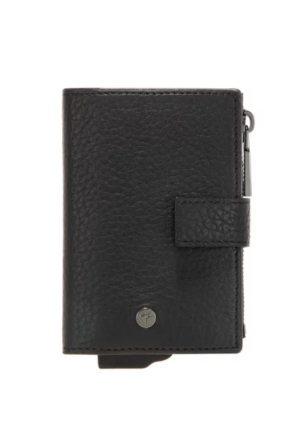 Характеристики Цвят: кафяв Материал: eстествена кожа Принт: без принт Джобове: отделения за карти - джоб с цип за монети - прозрачен джоб Детайли: релефна повърхност - метално лого Закопчаване: капси Състав Външна част: 100% телешка кожа