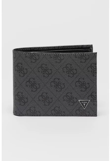 Характеристики Цвят: черен Материал: екологична кожа Принт: без принт Джобове: 1 отделение за банкноти - 6 отделения за карти - 4 джоба без закопчаване - 1 за монети Детайли: лого Закопчаване: капси Състав Външна част: полиуретан Подплата: полиестер