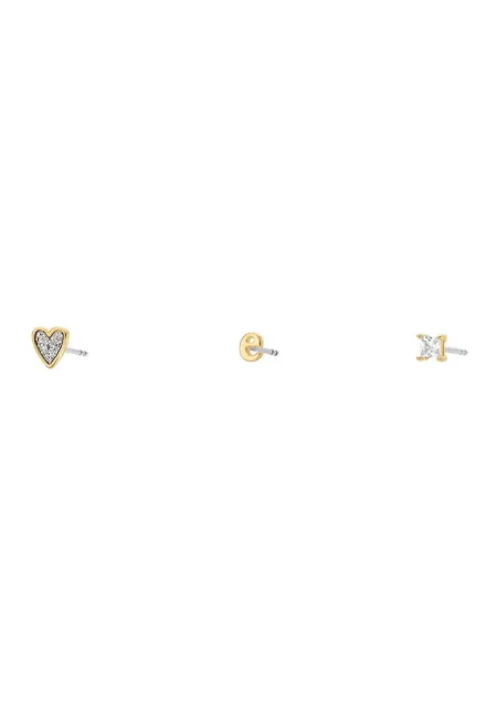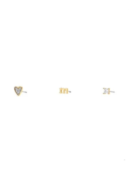 Обеци с форма на звезда и луна - 3 чифта - Златист