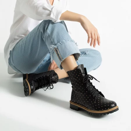 Дамски черни боти тип кубинки от естествена кожа