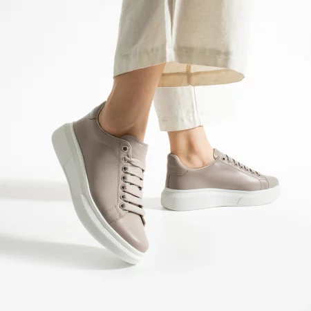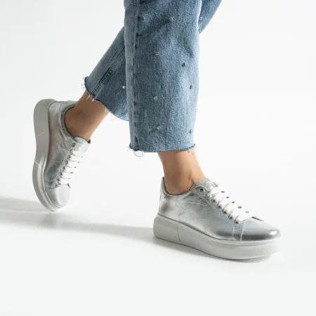 Дамски анатомични сребристи кецове от естествена кожа