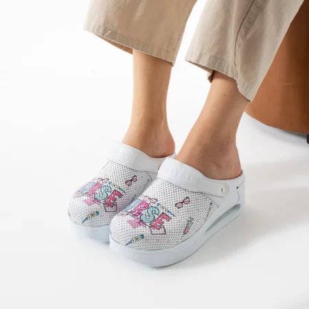 Анатомични бели дамски кецове от естествена кожа