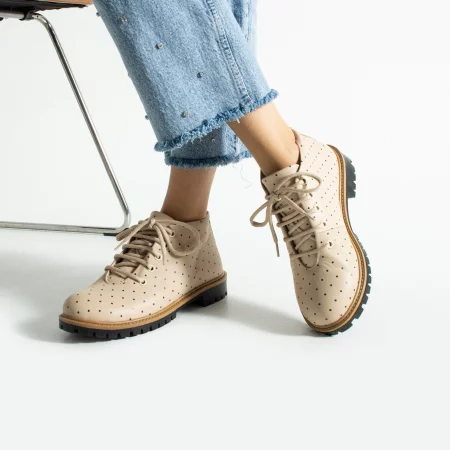 Дамски къси бежови боти от естествена кожа до глезена