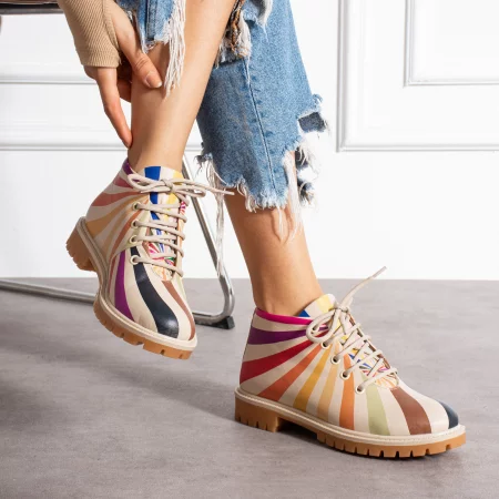 Дамски боти с многоцветен принт от естествена кожа