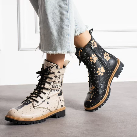 Черни дамски боти от естествена кожа с принт