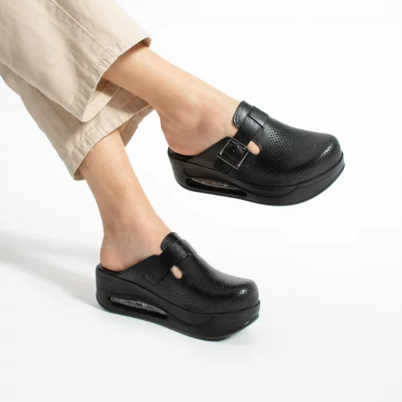 Анатомични дамски черни кецове от естествена кожа