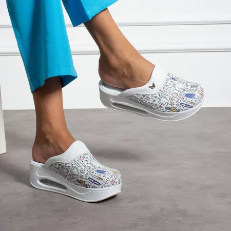 Бяло анатомично сабо от естествена кожа