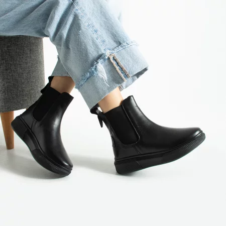 Черни дамски боти от естествена кожа с принт