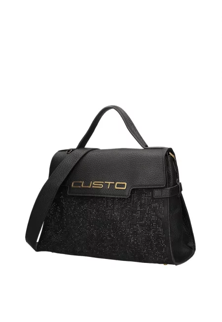 Чанта за рамо Ultra от еко кожа с релефно лого - Черен