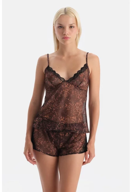 Полупрозрачна пижама с принт - Сиво-кафяв -