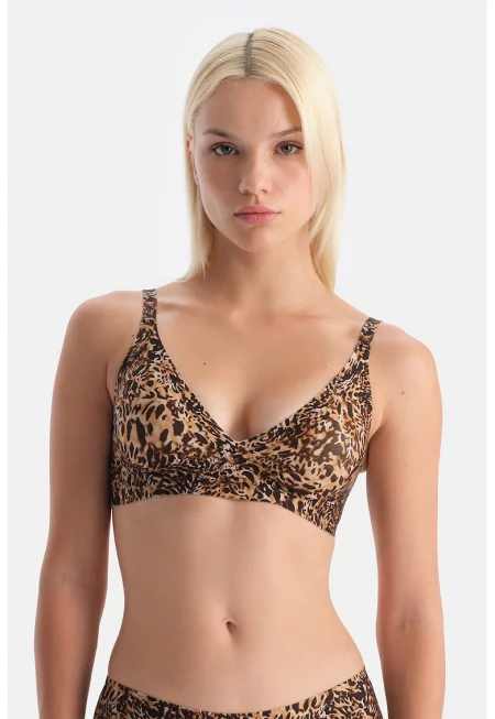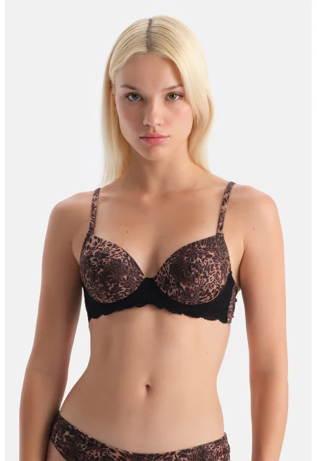 Сутиен с подплънки и принт - Черен - Сиво-кафяв -