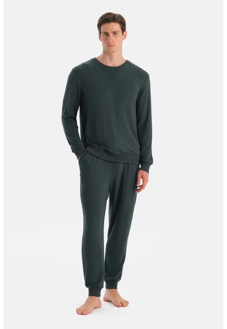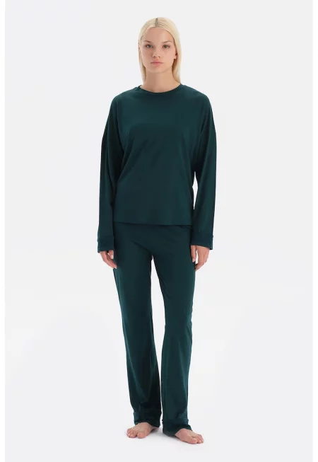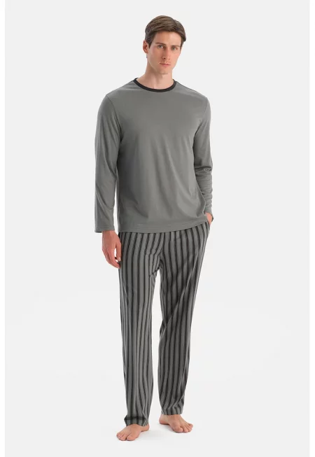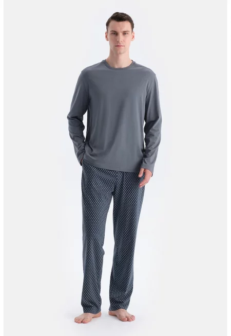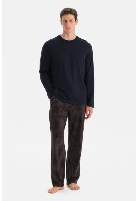 Дълга пижама с модал и памук с овално деколте