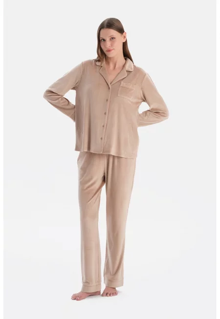 Пижама с модал и принт - Светло бежово -