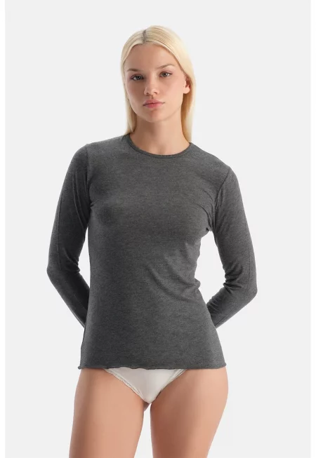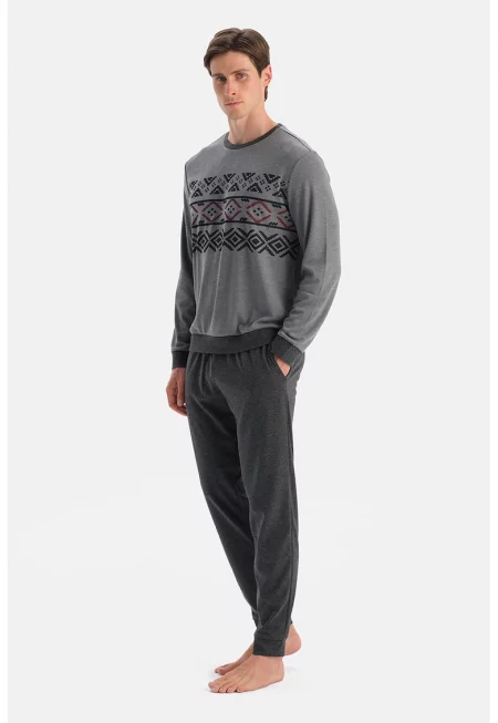 Пижамена слим блуза с кашмир - Меланж тъмно сиво -