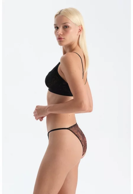 Бикини с дантела и принт - Черен - Сиво-кафяв -