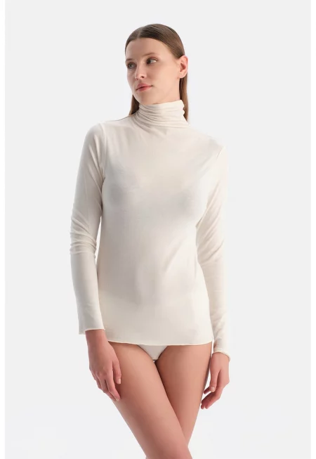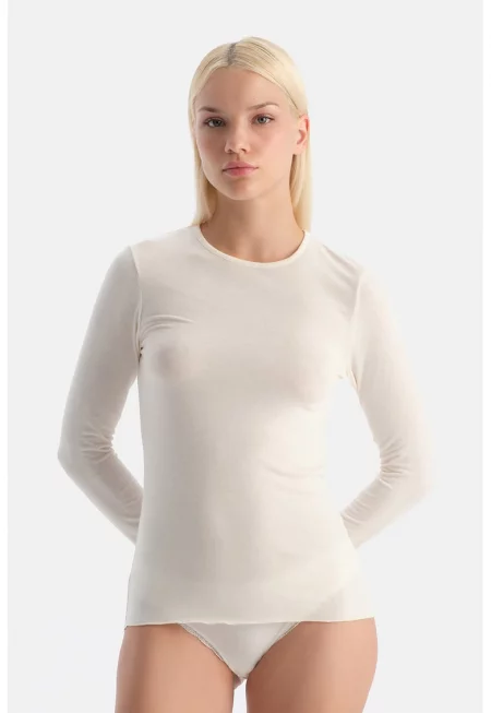 Домашна слим блуза с кашмир - Мръснобял -