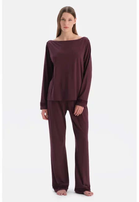 Пижама с модал и принт - Тъмновиолетов -