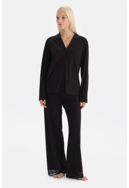 Пижама с дантела - Черен -