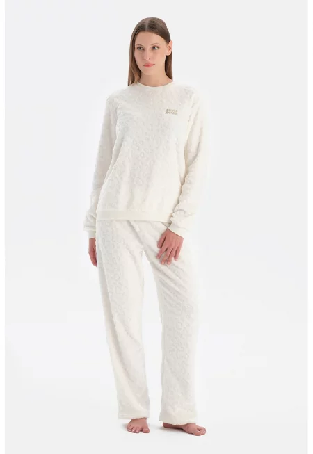 Пижамена слим блуза с кашмир - Мръснобял -