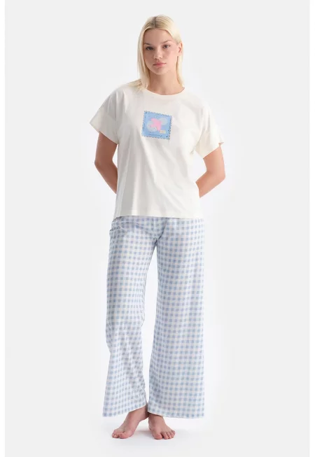 Десенирана пижама с къси ръкави - Пастелносин - Мръснобял -