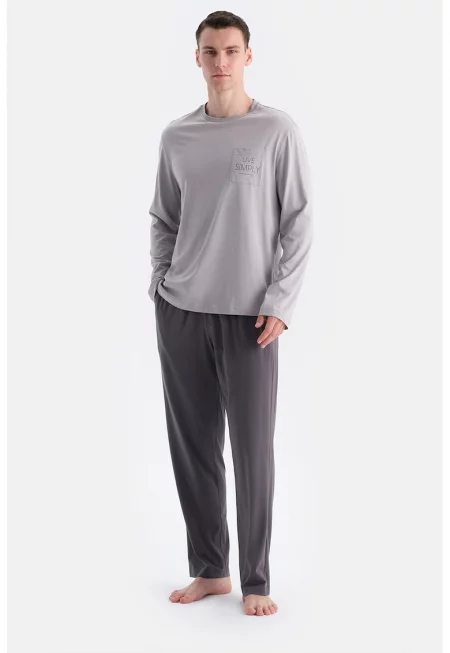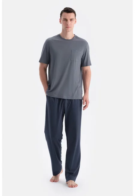 Пижама с памук и модал със странични джобове