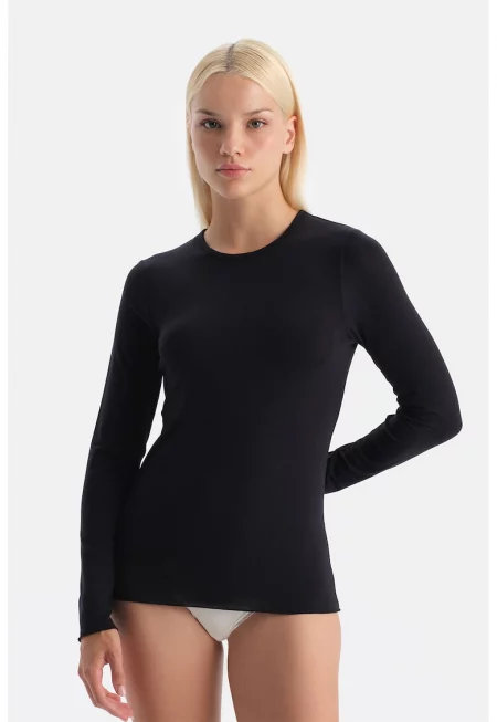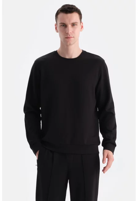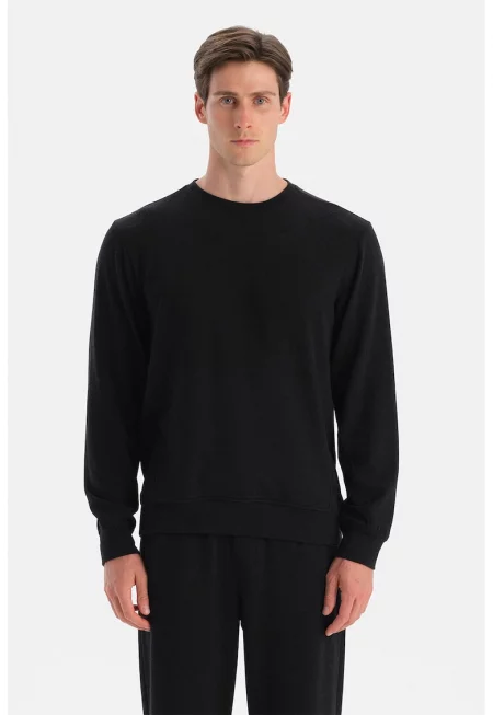 Суитшърт с овално деколте - Черен -