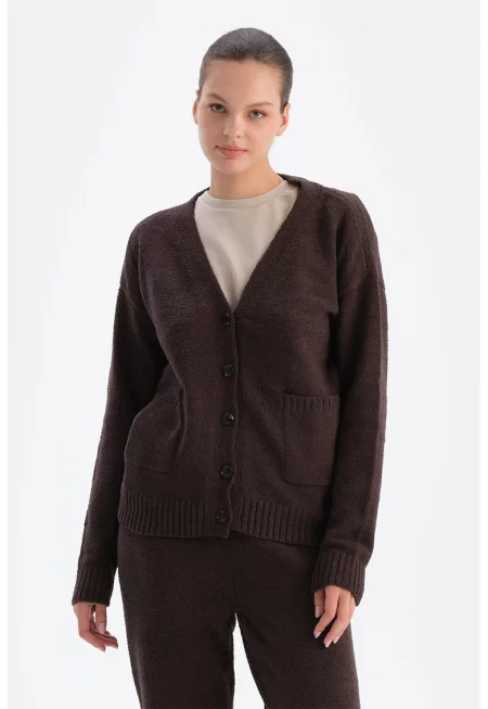 Жилетка с пришити джобове - Тъмнокафяв -