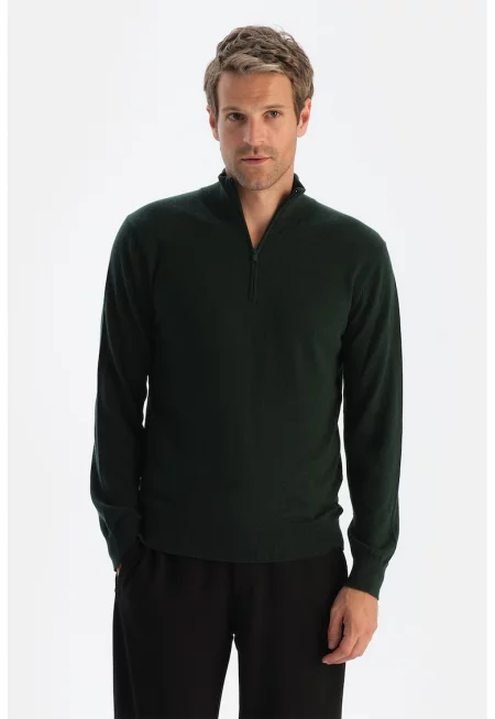 Пуловер с вълна и кашмир с къс цип - Бледозелен -