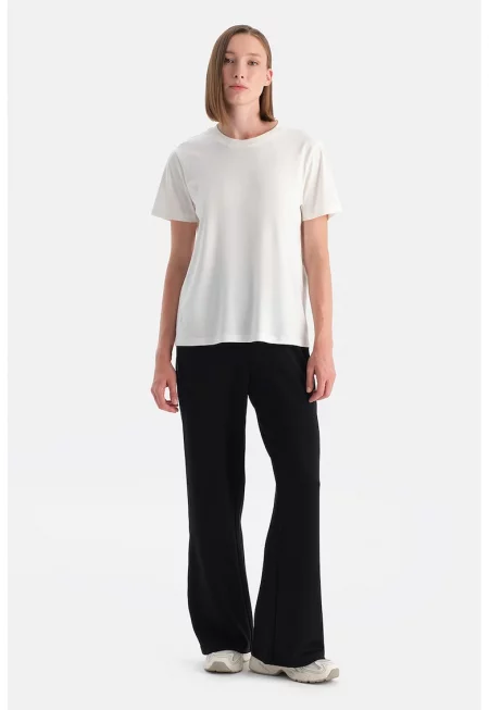 Плетен панталон с еластична талия - Бял -