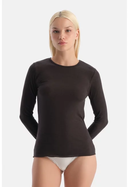 Пижамена слим блуза с кашмир - Черен -