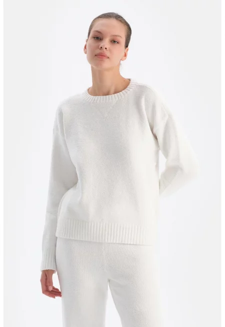 Пуловер с овално деколте - Бял -