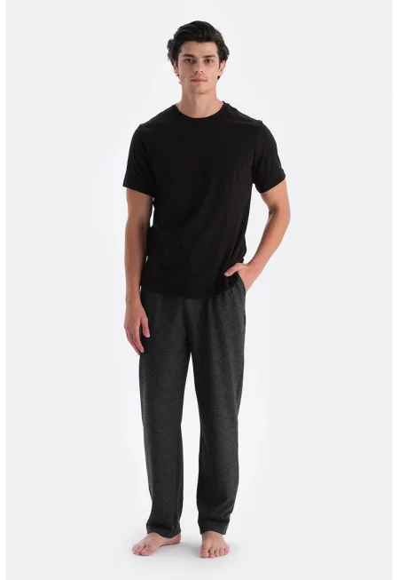 Права долна пижама с връзка - Черен меланж -