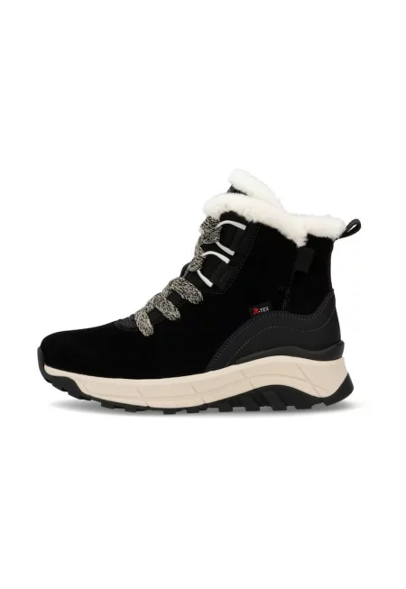 Дамски боти с платформа - черни - естествена кожа RIKW1873-00