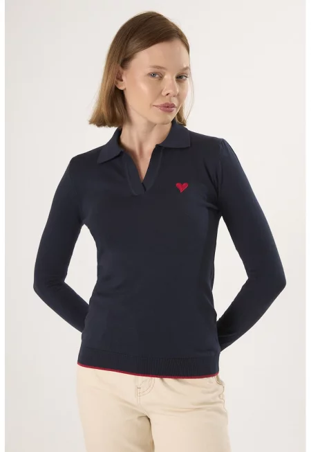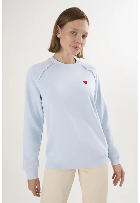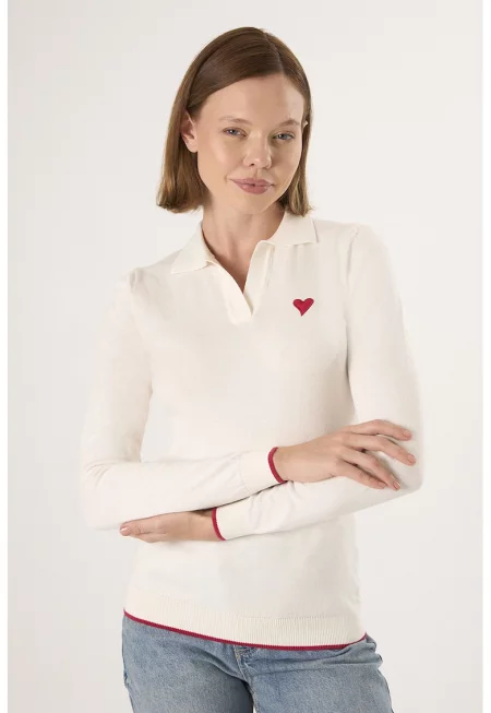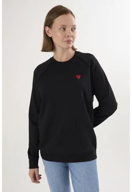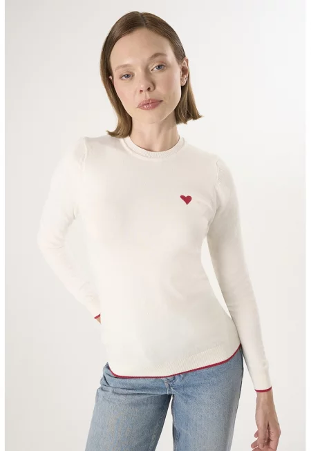 Памучен пуловер със сърцевидна апликация