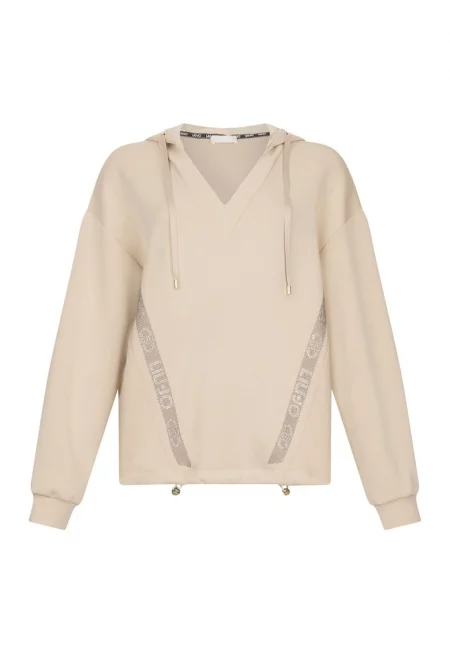 Суитшърт с овално деколте и декоративни камъни