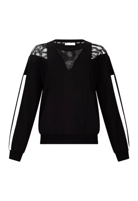 Суитшърт с овално деколте и дантела