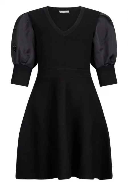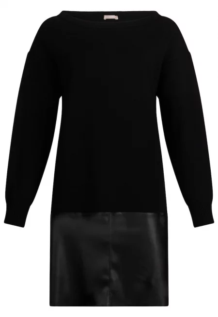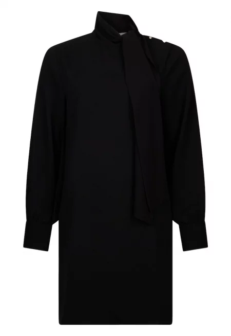 Рокля с дълги ръкави и деколте тип лодка - Черен