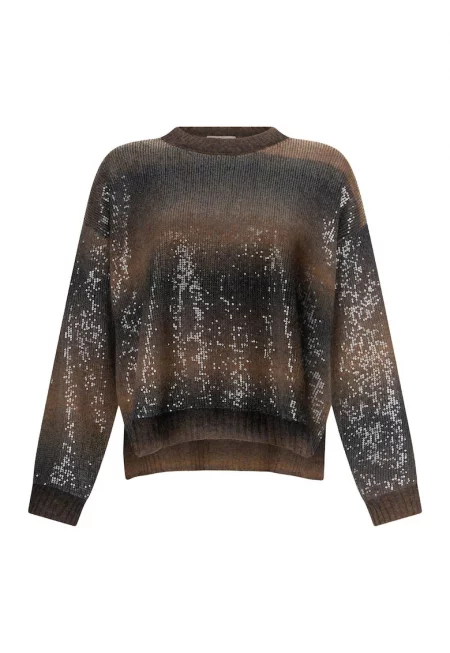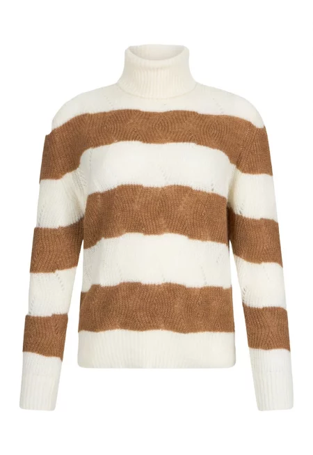 Раиран пуловер с вълна - Тъмнокафяв/Мръснобял