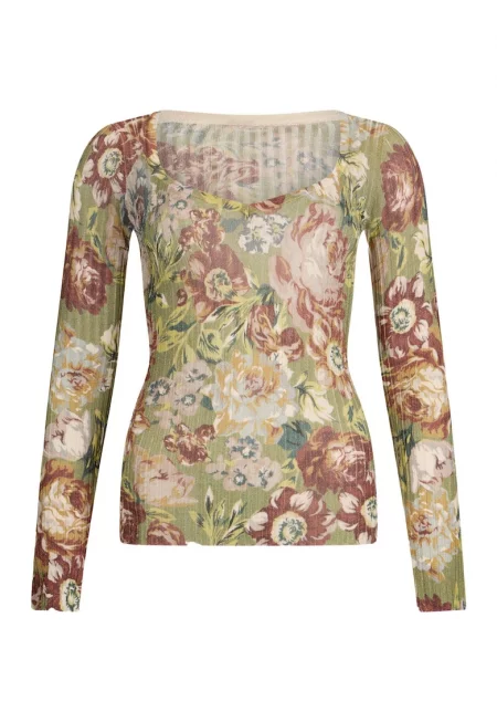 Флорална блуза по тялото - Червен/Зелен/Крем
