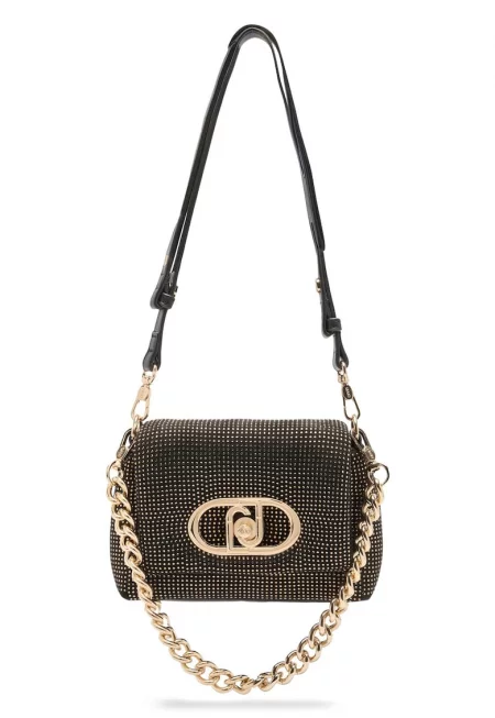Чанта през рамо Lapuffy с декоративни камъни - Златист/Черен