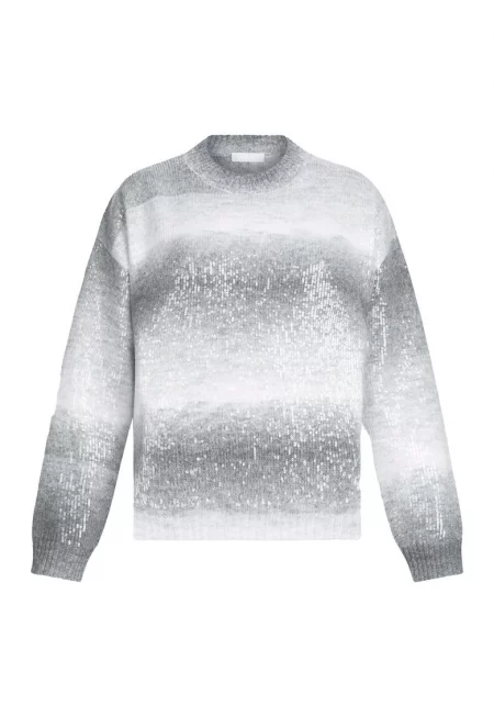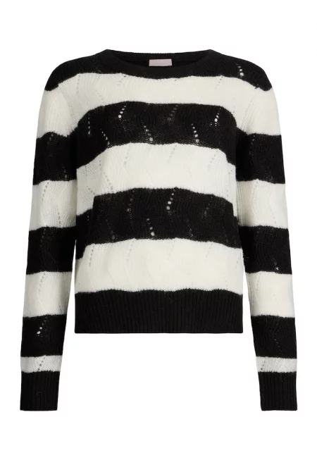 Раиран вълнен пуловер - Бял/Черен/Сив