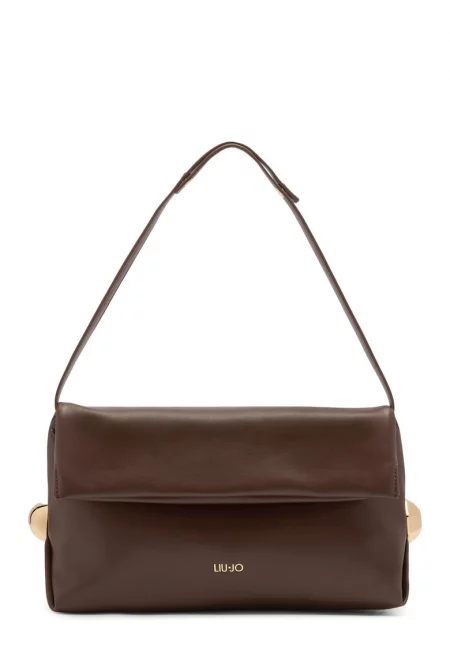 Чанта за рамо от еко кожа с капаче - Кафяв