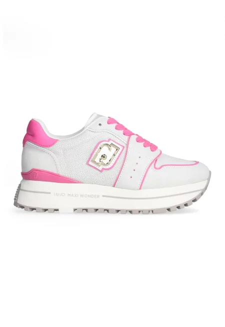 Велурени спортни обувки с лого - Фуксия