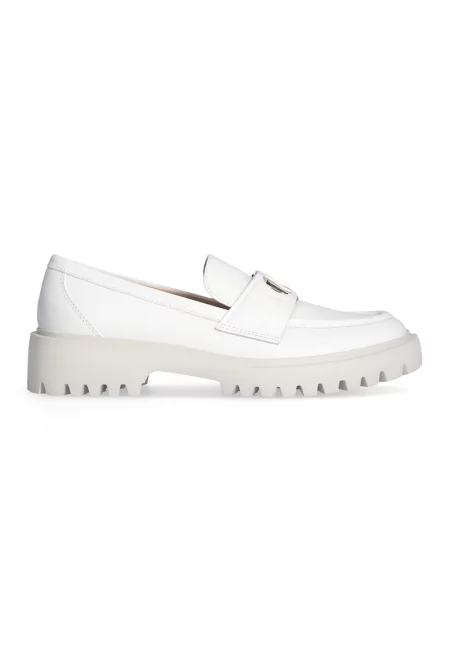 Кожени мокасини с лого - Бял