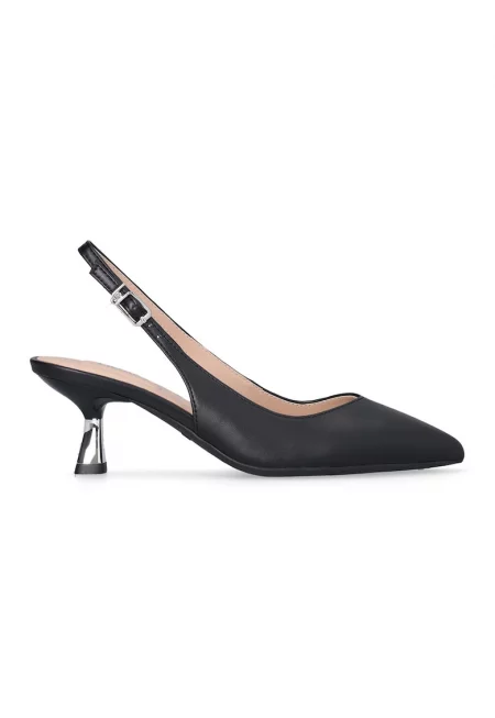Кожени обувки с котешки ток - Черен