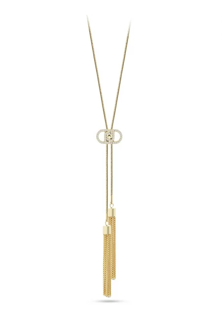Колие от неръждаема стомана с кристали - Златист