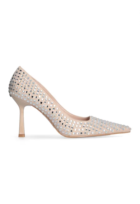 Остри обувки с декоративни камъни - Розово/Сребрист