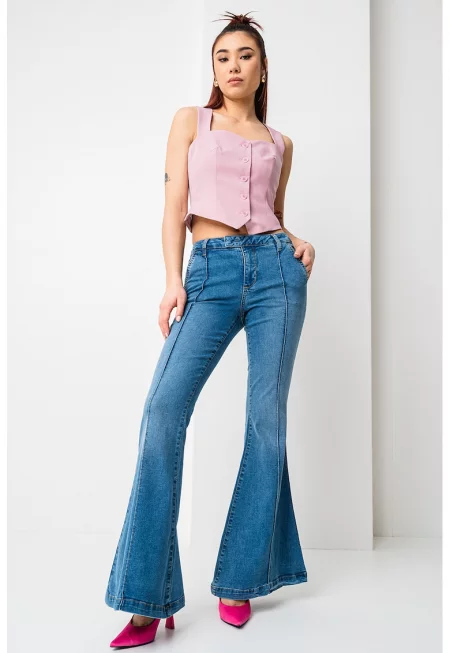 Дънки със средна талия - Светлосин