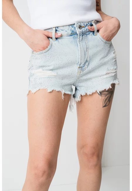 Къси дънки с ресни - Ледено синьо