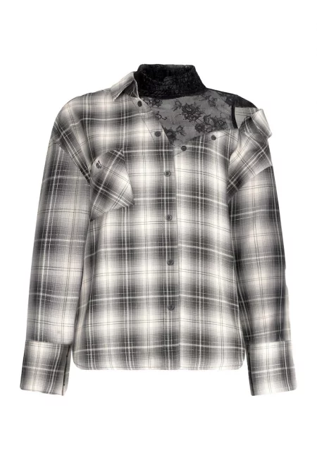 Блуза на каре с дизайн 2 в 1 - Бял/Сив